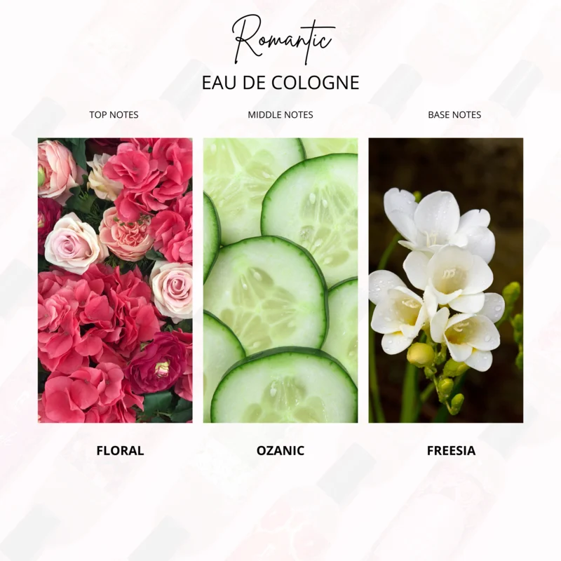 Aroma floral fruity yang bersih dan segar, dipadukan dengan sentuhan manis yang lembut sehingga menciptakan keseimbangan yang harmonis. Parfum ini memberikan kesan feminin, romantis, dan menyegarkan sepanjang hari.