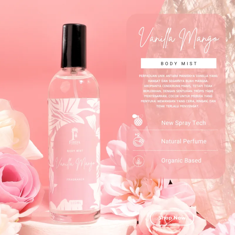 Perpaduan unik antara manisnya vanilla yang hangat dan kesegaran buah mangga tropis. Aromanya cenderung manis, namun tidak berlebihan sehingga menyuguhkan sensasi ceria, ringan, dan menyegarkan, tanpa kesan menyengat. Sangat cocok bagi Anda yang menyukai parfum dengan karakter fresh dan feminin.